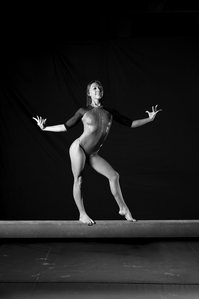 I have so many great color photos, but some shots just demand black and white. I wanted a shot that conveyed the artistry and strength of a gymnast and Cara delivered. She couldn’t have been tougher or more “gymnast.”